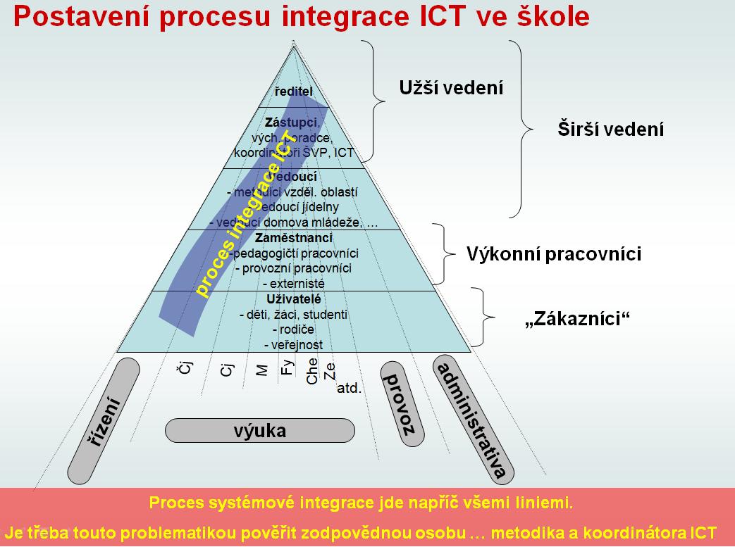 Hlavní roli v tomto nikdy nekončícím procesu hraje metodik a koordinátor ICT. Nemůže však zůstat sám. Bez aktivní podpory vedení školy a bez spolupráce s metodiky jednotlivých vzdělávacích oblastí či oborů, resp. se správcem sítě to nejde.