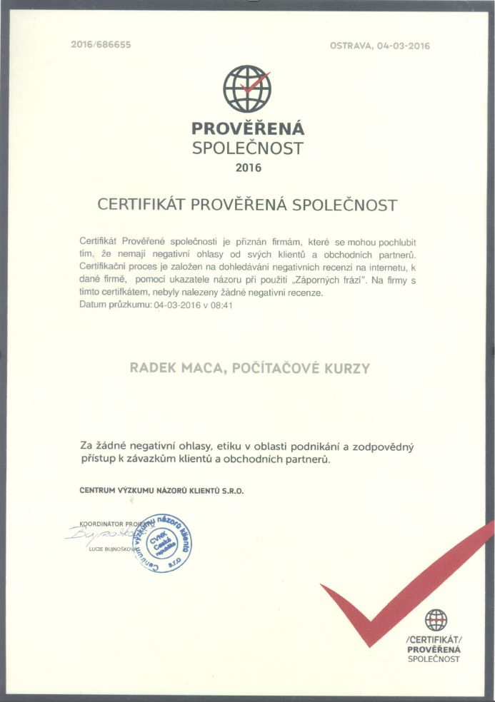 | Od roku 2016 jsme | Prověřená společnost |